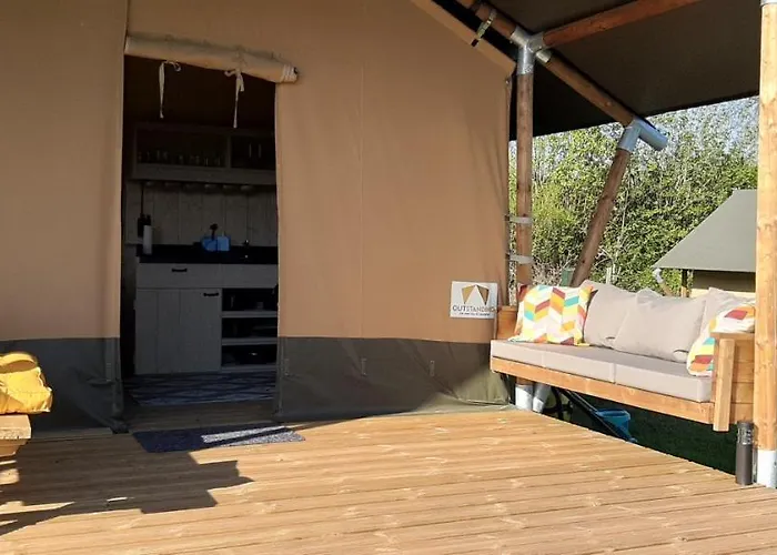La Safaritent Lodge 5 Ruurlo está situada a 1 km de Museum More y ofrece ciclismo para los huéspedes activos. Esta carpa de lujo, que ofrece a sus huéspedes Wi-Fi y un aparcamiento privado gratuito, está a unos 25 minutos a pie de MAG Museum.